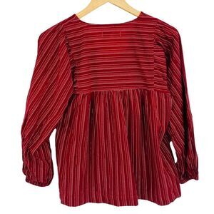 Madewell red metallic stripe peasant top size xsmall. Excellent condition see photos for measurements and fabric content
