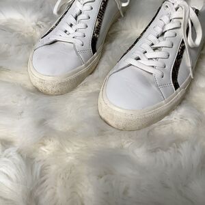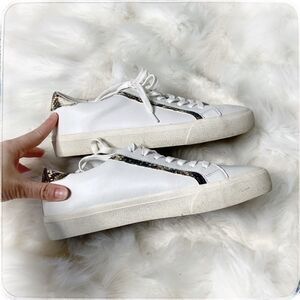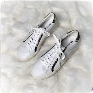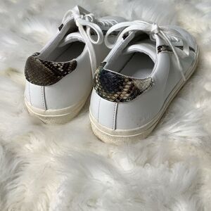 Chic white sneakers by madewell. Features snakeskin accents. Good preowned condition with some small areas of discoloration as shown but tons of life left.