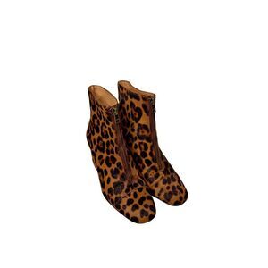 Madewell the amalia zip boots in leopard calf hair print size 5. Rounded toe. Zipper front. Chunky heel. Good condition. Heel height 3”.