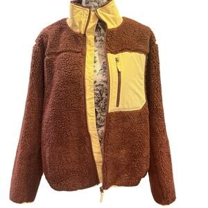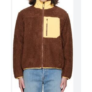 Cozy meets cool in this Madhappy sherpa fleece jacket, designed in a rich chocolate brown with contrast yellow nylon accents. Features a high funnel neck, full zip closure, and zippered chest pocket for utility and style. Made for ultimate warmth and standout layering.