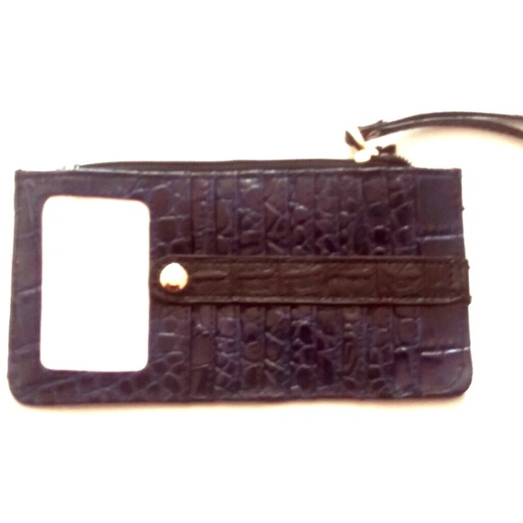 Madi Claire Wallet Embossed Leather Wristlet Navy Blue Black NWT Genuine Leather