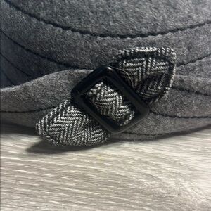 Stylish gray wool hat featuring a chic buckle design. Perfect for adding a touch of elegance to any outfit.