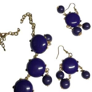 Madison Avenue Chunky Bubble Statement Necklace with Matching Earrings Navy Blue