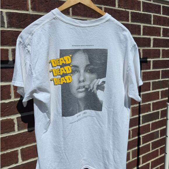 For Madison Beer's song "Dead" on her 2018 debut album "As She Pleases". I can't find much information about this shirt, only that it is shown as being buyable on a very dated Madison Beer website.
