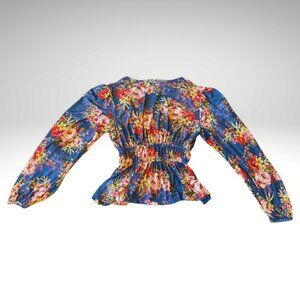 Madison & Berkeley Navy Floral Mesh V-Neck Blouse Lightweight Boho Top