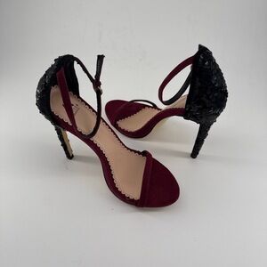 Madison By Shoedazzle Heels Womens US 7.5 Burgundy Ankle Strap Open Toe Chic