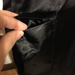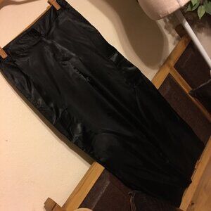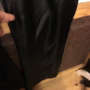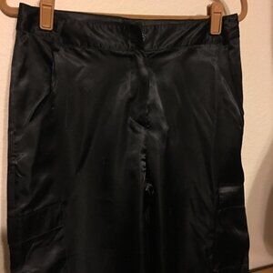 Madison & Co black satin pants. Shiny black satin pants, zipper button close, belt loops, side pockets, thigh pockets, wide leg style, fabric does not stretch, true to size, size 12. 32” waist, 30” inseam, 41” long. Never worn.