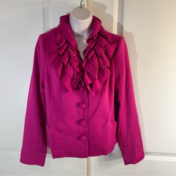 Vibrant fuchsia blazer with elegant ruffle detail. Perfect for elevating any look. Fully lined. Excellent condition.