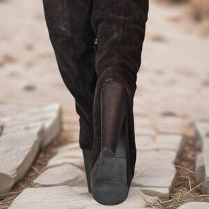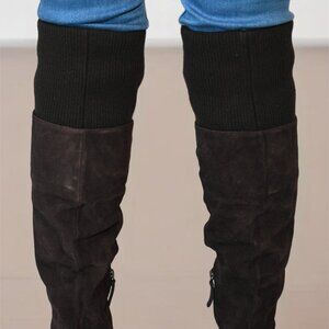 Madison Harding Dark Brown Suede Platform Knee-High Boots - Size 8. Brand new. Never worn except for photos. Style: Murray. Discontinued style. High-quality suede boots with sweater material at knee.