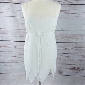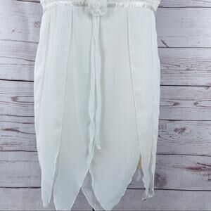 Madison Intamates negligee with lace accents, petal shape pieces, unique hem. Adjustable straps, sheer material. Size large