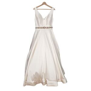 Madison James Bridal Ball Gown A-Line Long Dress Rhinestone White MJ501 Size 14