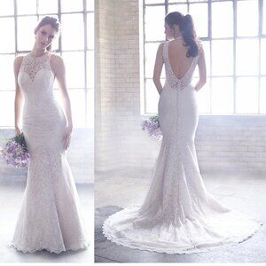 Madison James by Allure lace mermaid/trumpet style wedding dress with train.