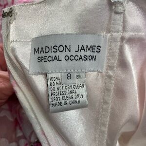 Madison James Special Occasion pink floral mini dress with optional straps and beaded belt. Please see pictures for more details and measurements.