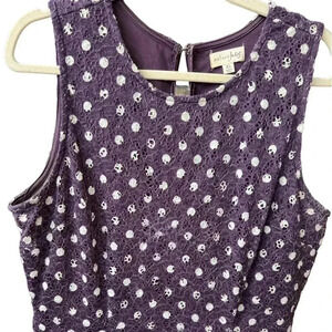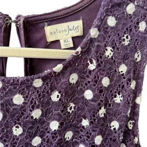 Adorable mini purple/white Polkadot Party Dress, in good used condition and it has a plenty of stretch with zipper closed back and it is lined and it is made very well .
