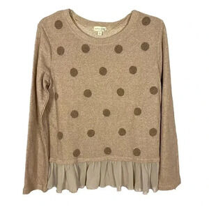 Madison Jules Beaded Tiered Contrast Mix Media Polka Dot Chiffon Ruffled Sweater