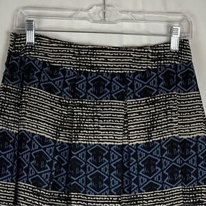 Madison Jules Black Blue Cream Batik Style Print Pleated Full Skirt NWOT Size M