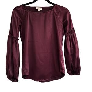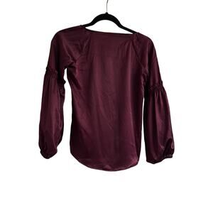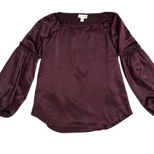 Madison Jules Women’s Boat Neck Balloon Sleeve Charmeuse Blouse Burgundy Sz XXS