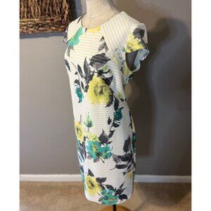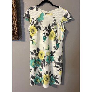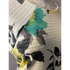 Madison Leigh Dress 14 Stretch Ivory Green Yellow Floral Summer Washable NEW
