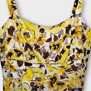 Madison Leigh Dress Women Sz 16 Sundress Retro Yellow Rose Cottagecore Vtg Beach