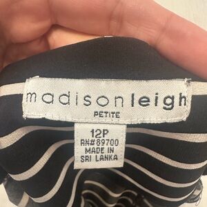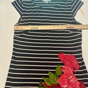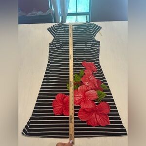 Madison Leigh Petite 12P Striped Floral Dress Black White Pink Cap Sleeve