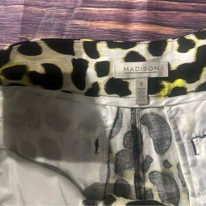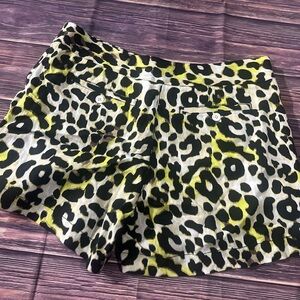 Stylish leopard print women's shorts featuring a bold black and green pattern. Perfect for a trendy and comfortable look.