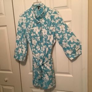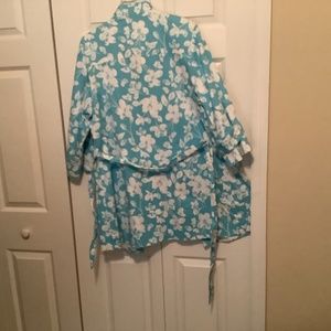 Madison Lightweight Lined Casual Coat, Belted, Size XL, Blue and White