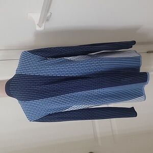 Madison Lilly, Size 1X, Blue and White Open Cardigan, EUC