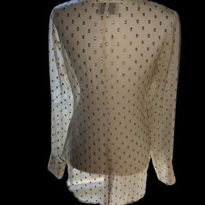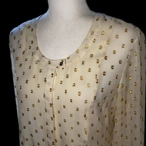 Madison Marcus Silk Button Down“Tuxedo Style Tails” Top Gold Metallic Cream S