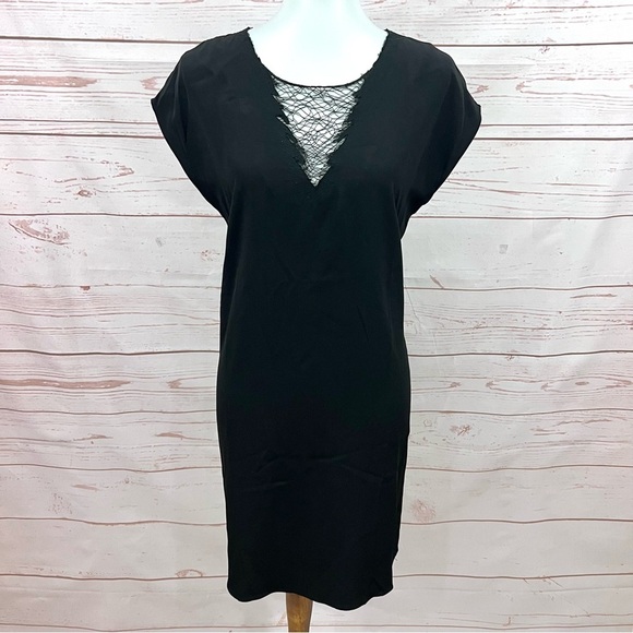 Madison Marcus Silk Dolman Sleeve Embroidered Lace Arrow Neck Shift Dress