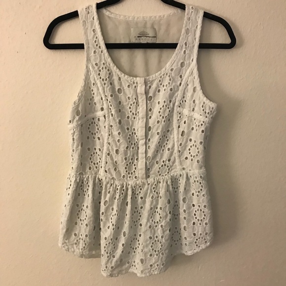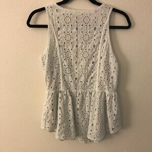 This top is so fun for summer. It is lacey throughout the front and the back and features a peplum look.