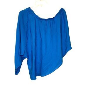 Madison Marcus Silk Asymmetric Off the Shoulder Blue Blouse Top Size Medium