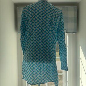 Madison Mathews Blue White Print Cotton Tunic Beach Cover Up Dress Size XL