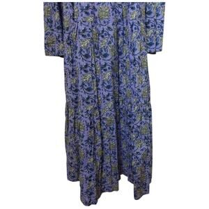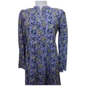 Madison Mathews Floral Print Cotton Boho Long Sleeves Midi Dress Size XS