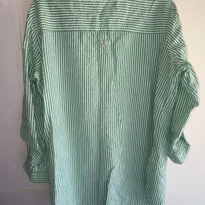 Madison Mathews Green White Seersucker Cotton Tunic CoverUp Button Down Size L