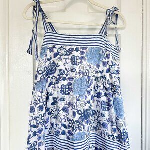 Madison Mathews Maxi Tier Print Dress - Blue White Floral and Stripes - Size L