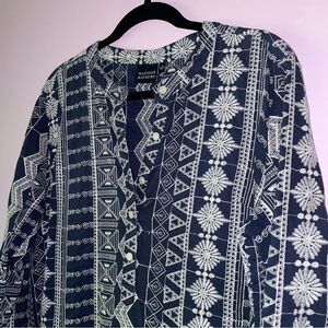 Madison Mathews Size L Tunic Dress Navy Embroidered Aztec Boho Southwestern