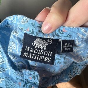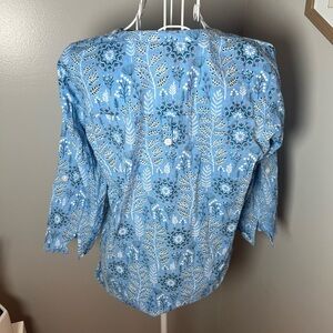 Madison Mathews Women's XS Blue Cotton 1/4 Button Top Floral 3/4 Sleeve Boho