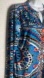 This Madison top is a vibrant, eye-catching piece with a bold, multicolored geometric print featuring blue, orange, and white hues. It has a relaxed fit, long sleeves, and a V-neckline and embellished. The lightweight jersey material makes it comfortable and perfect for casual wear.