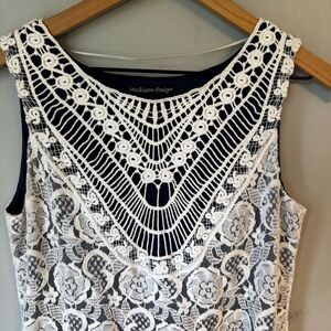 Madison Paige Bodycon Cottagegoth Mini Shift Dress Size M- Blue With White Lace
