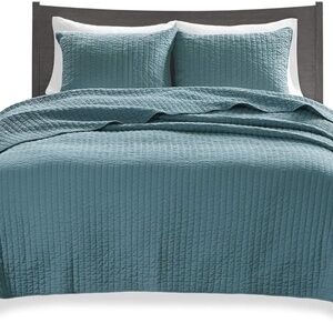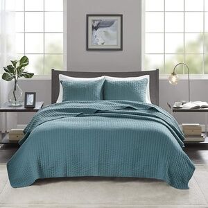 Madison Park 3pc Full/Queen Mitchell Reversible Coverlet Set Teal: Microfiber