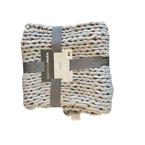 This Madison Park chunky knit throw blanket offers a soft, cozy design crafted from 100% acrylic. Measuring 50"x60", its modern grey color complements any living space, ensuring warmth and style. • Dimensions: 50"x60" • 100% acrylic material • Stylish chunky knit design • Elegant grey ribbon packaging • Lightweight yet warm New with tags. Made in China. Smooth acrylic material provides easy care and durability. Spot clean recommended. Features: • All season • Knit • Made in China • Spot clean recommended Size: Unisex 50x60 Condition: New With Tags