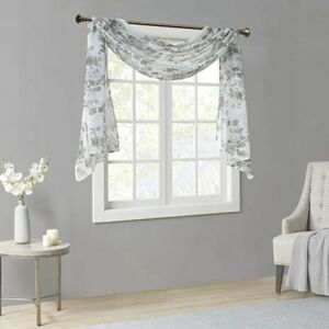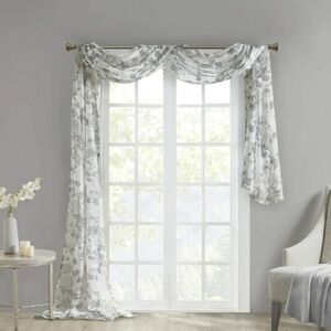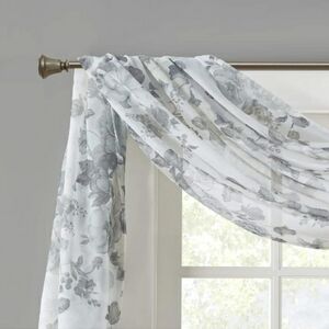 Madison Park Curtain 42x144 One Scarf Panel Floral Simone White