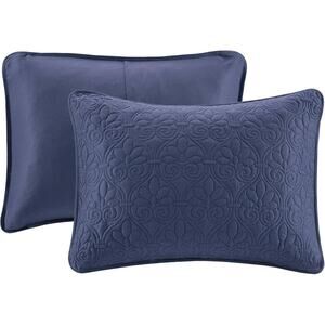 Madison Park Quebec Quilt Set - Luxurious Damask Stitching Design Navy 3 Piece