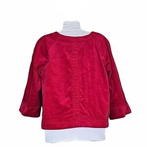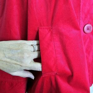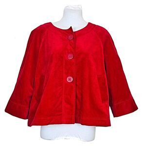 This Madison corduroy swing coat in size medium is the perfect addition to any wardrobe. The solid red color and button closure make it a classic piece for any occasion. The cotton blend outer shell material ensures comfort and durability. The coatigan features accents of buttons and a heart, adding a touch of retro and preppy style.