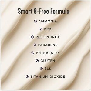 • Smart 8-Free: no ammonia, parabens, resorcinol, PPD, phthalates, gluten, SLS, or titanium dioxide