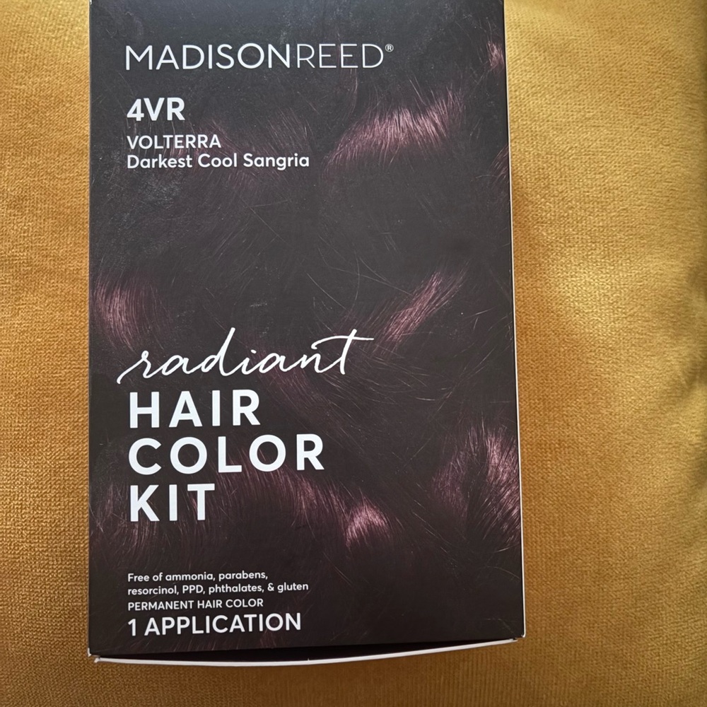 Permanent hair color. Radiant finish. Hair color with a fun shade of sangria. New, never Ed opened. Stored in a cool dark pantry