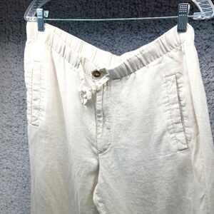 Madison Relax Fit Linen Pants Drawstring, Front Zip-Up 4 Pockets Women's Medium.
