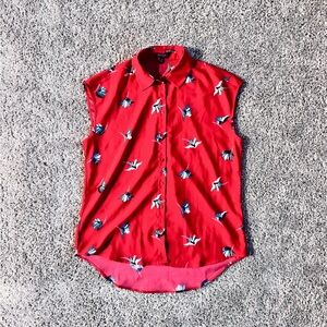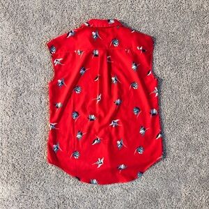 Madison Sleeveless Button-Up Blouse with collar Red Printed - Size Medium
