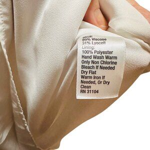 It is made of a combination of polyester, viscose, and lyocell, and should be hand washed only.