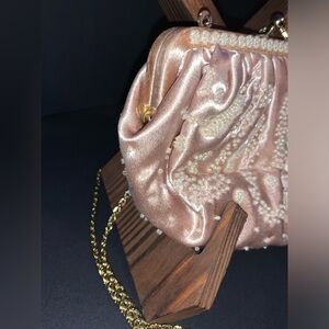 Gorgeous unique purse with satin cloth & beaded design, with golden chain